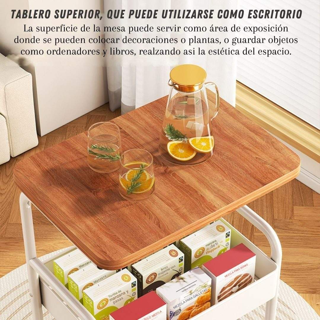CARRITO ORGANIZADOR METÁLICO CON MESA DE MADERA