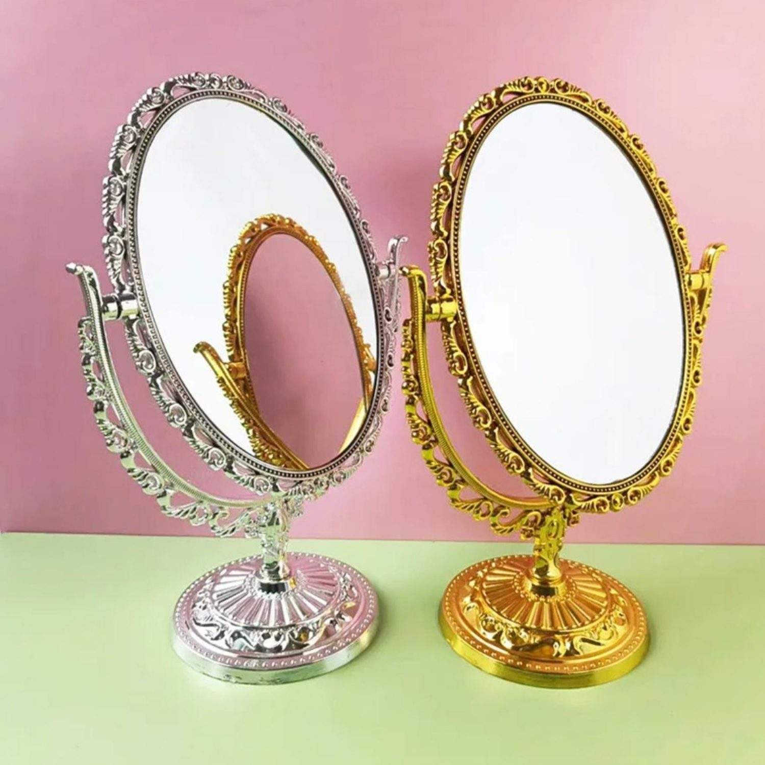 Dale un toque elegante y sofisticado a tu tocador con este hermoso espejo de estilo clásico. Su diseño ovalado con detalles ornamentales lo convierte en el complemento perfecto para maquillaje, peinados o decoración.