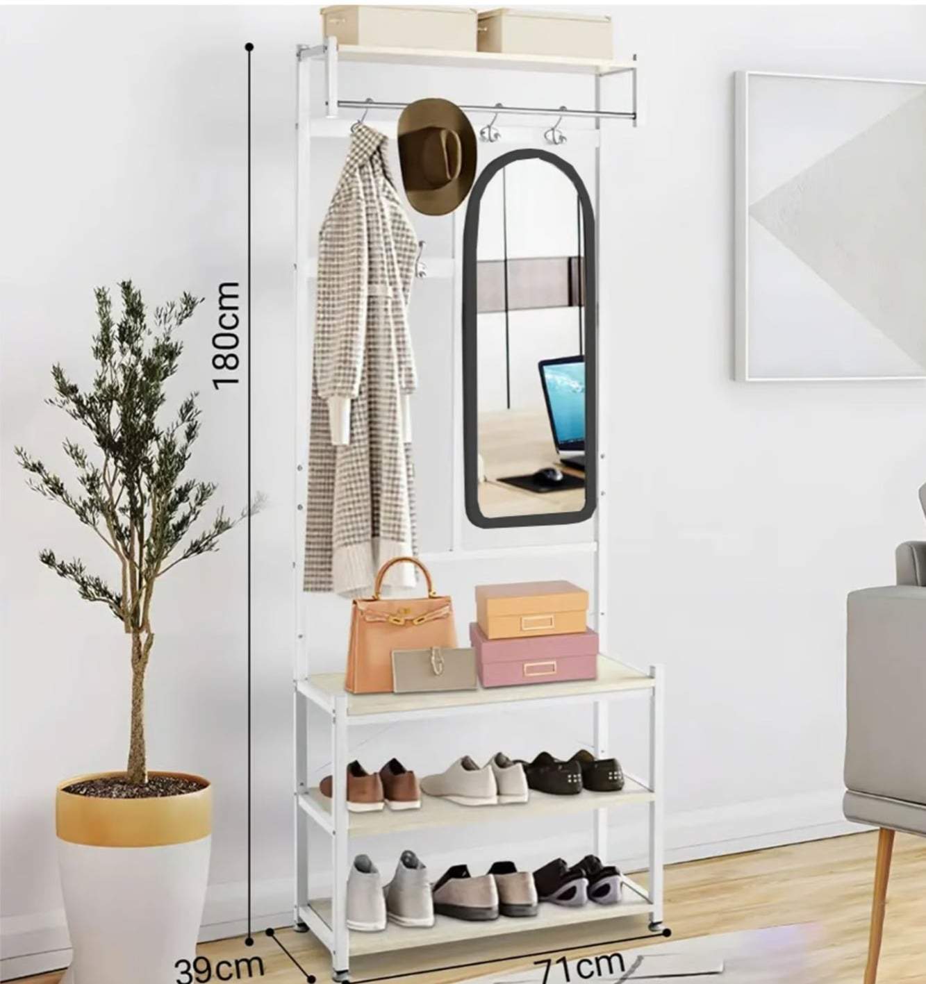 ESTANTE PERCHERO ZAPATERA CON ESPEJO