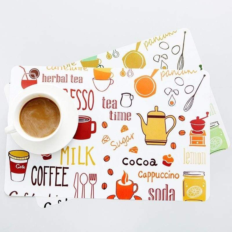 Hermosos individuales con diseño temático de café, perfectos para decorar tu comedor o cocina con un estilo creativo y cálido.