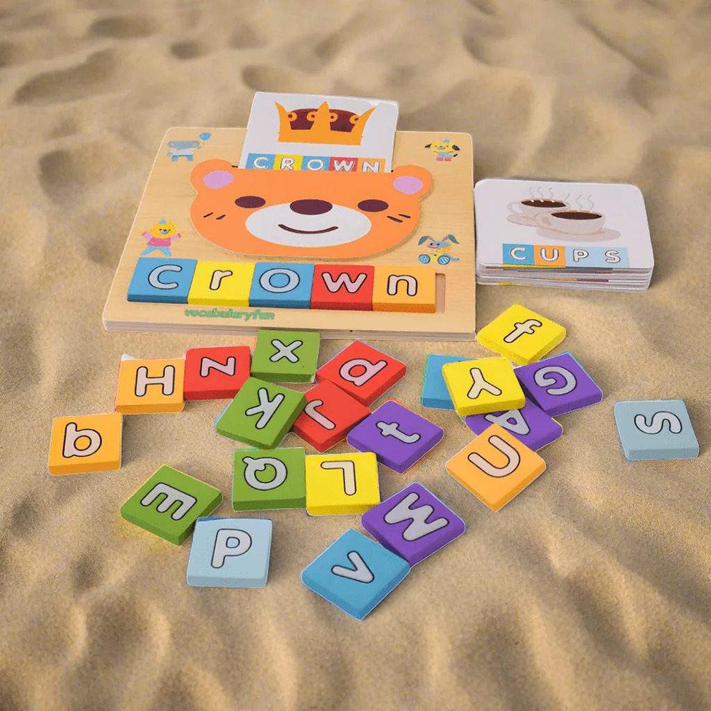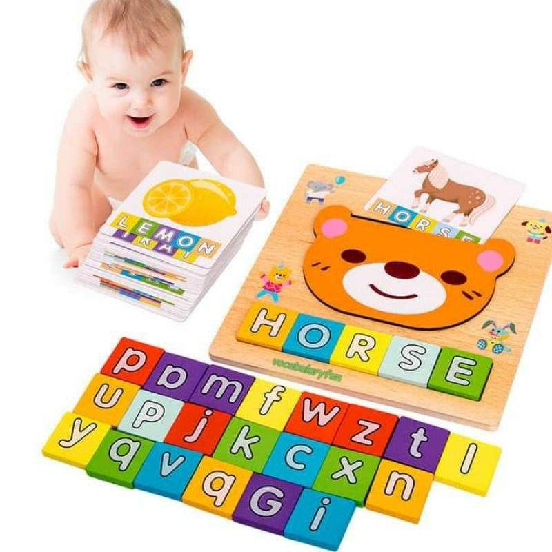 Divertido y educativo juego de madera ideal para que los pequeños aprendan inglés mientras juegan. Con piezas coloridas y diseño infantil adorable, este set ayuda a desarrollar la memoria, la coordinación y el reconocimiento de palabras de forma entretenida.
