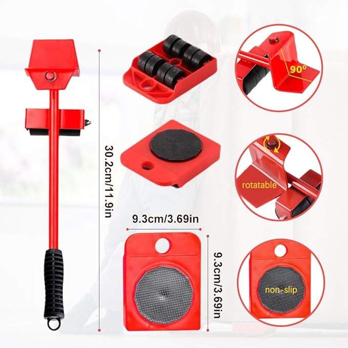 Estas herramientas le ayudan a mover los artículos domésticos de un lugar a otro con facilidad, es una herramienta muy útil en casos de mudanza o reorganización de sus muebles pesados. También le permite mover temporalmente sus electrodomésticos para realizar la limpieza. Cada soporte va en una esquina del mueble y en conjunto son capaz de resistir 150 Kg.