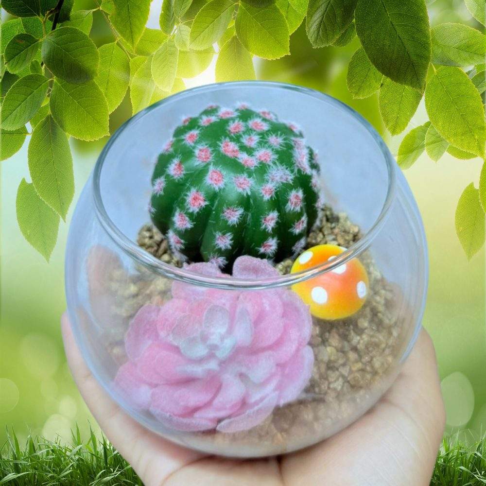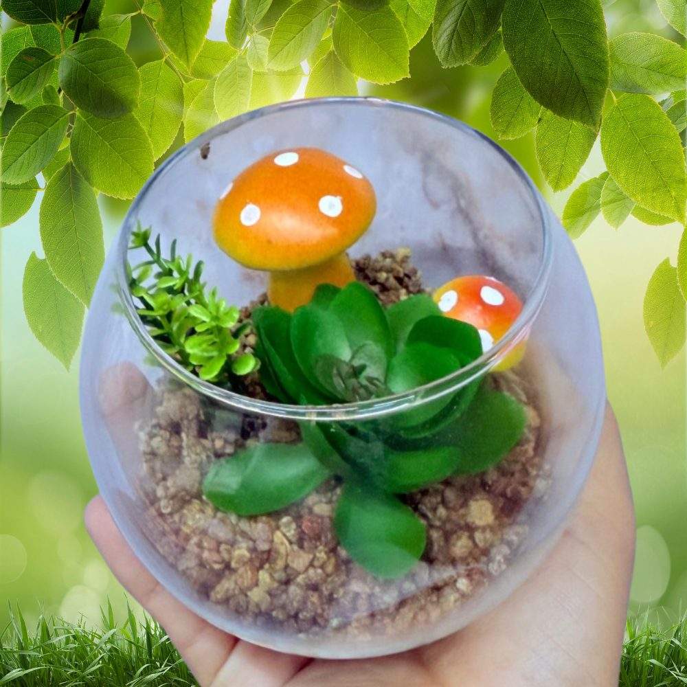✨ Planta decorativa en frasco circular para la decoración del hogar.