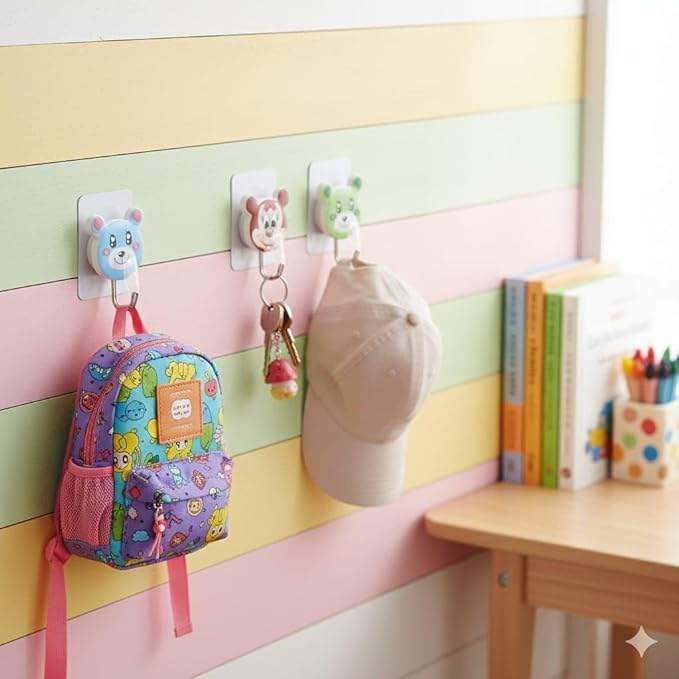 Mantén el cuarto de los niños ordenado y lleno de estilo con estos adorables percheros adhesivos con diseño de animalitos. Perfectos para colgar mochilas, gorras, llaves o accesorios pequeños, ayudan a organizar el espacio de forma práctica y divertida.
