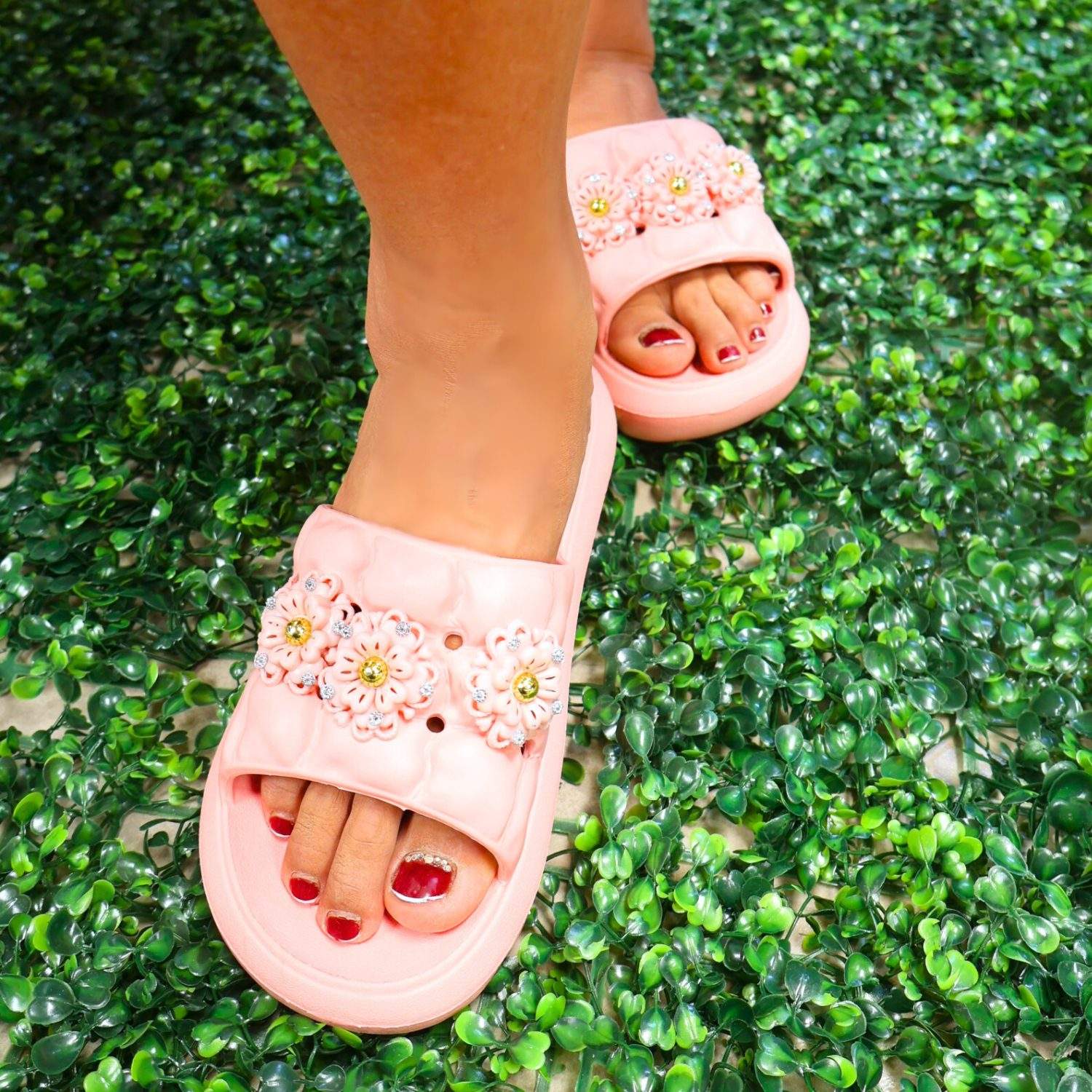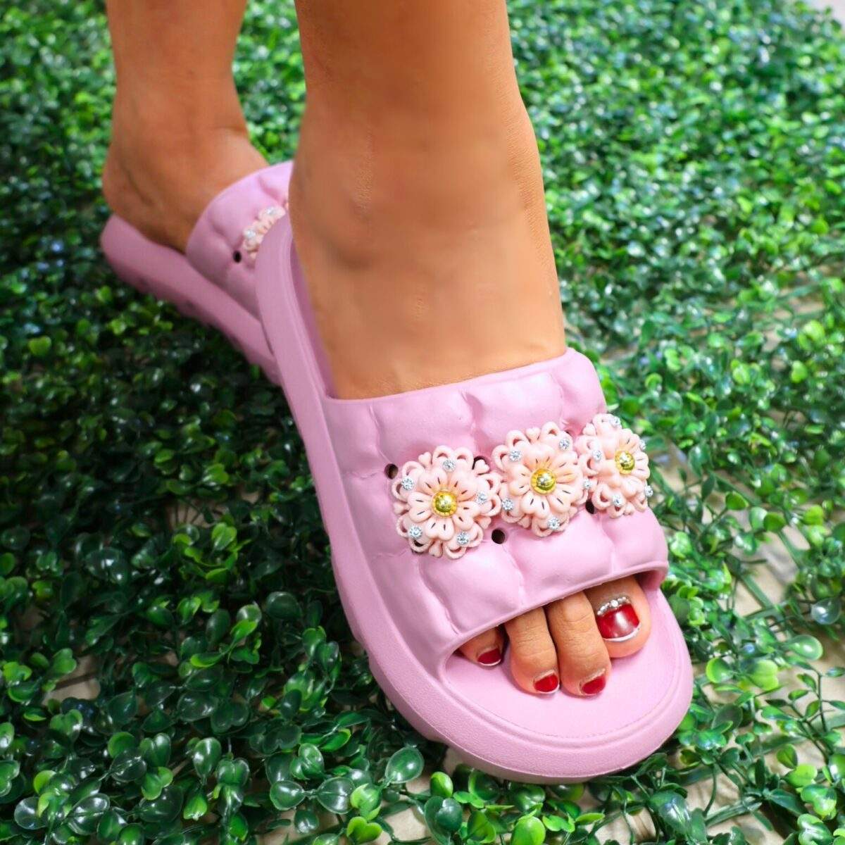 Lindas sandalias casuales que destacan por su delicado diseño floral, ideales para brindar comodidad y un toque femenino en cualquier ocasión.