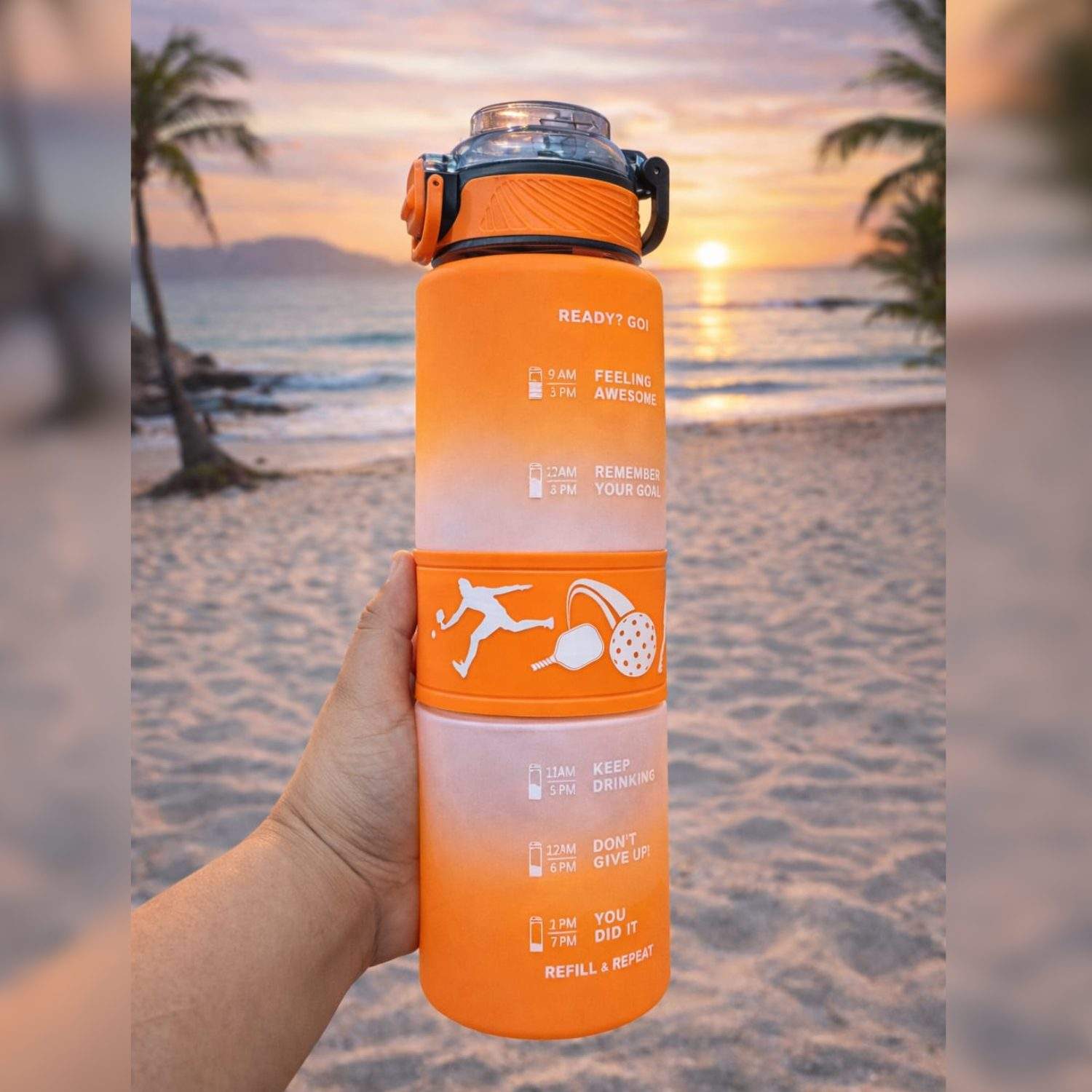 📏 Marcadores motivacionales de hidratación que te recuerdan beber agua durante el día.