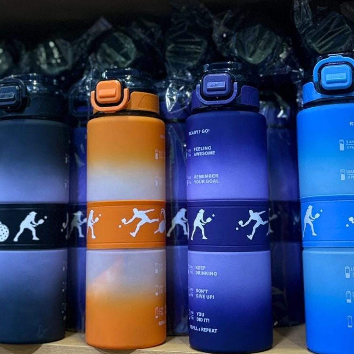 Mantente hidratado durante todo el día con estas modernas botellas deportivas de gran capacidad, diseñadas para acompañarte en el gimnasio, el trabajo, el colegio o tus actividades al aire libre.