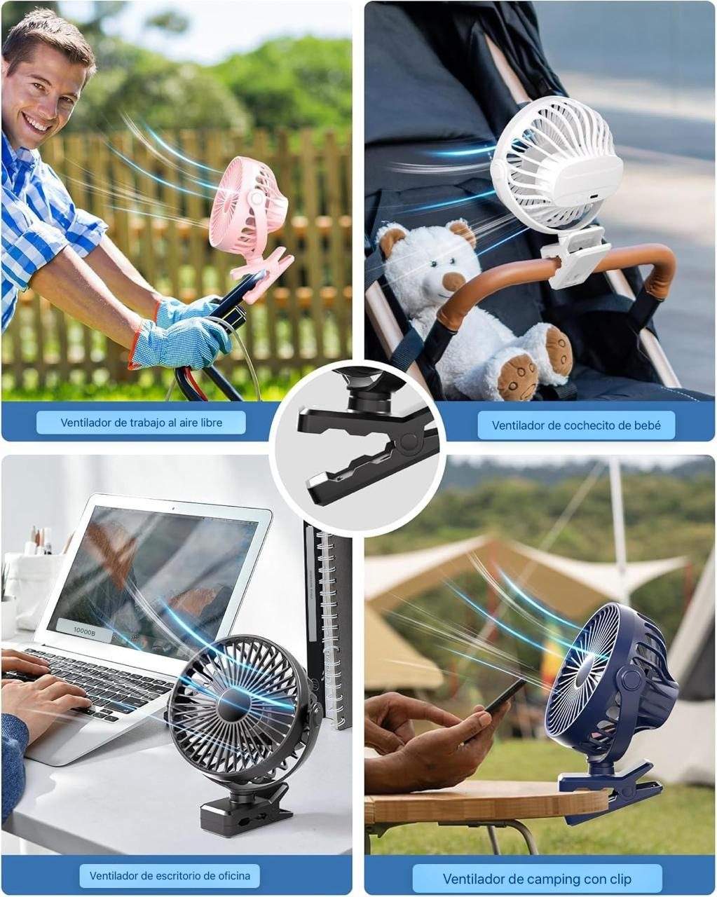 🔸 Con pinza de agarre extraíble, es ideal para colgar, colocar de pie o utilizar como un ventilador de mano.