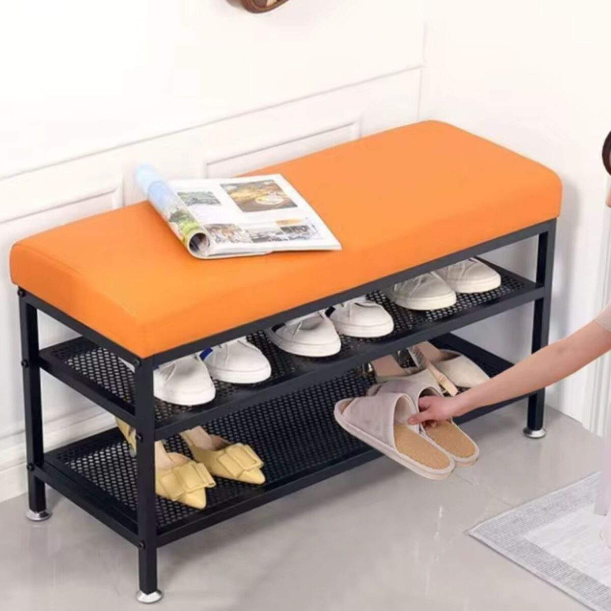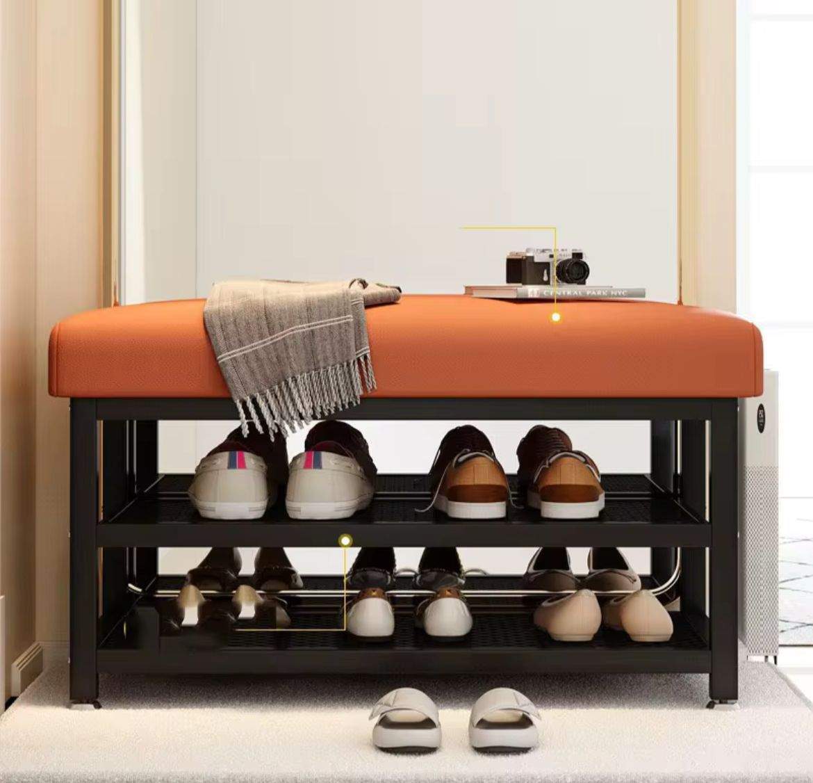 - 🪑 Asiento acolchado cómodo: Perfecto para sentarte mientras te colocas los zapatos.