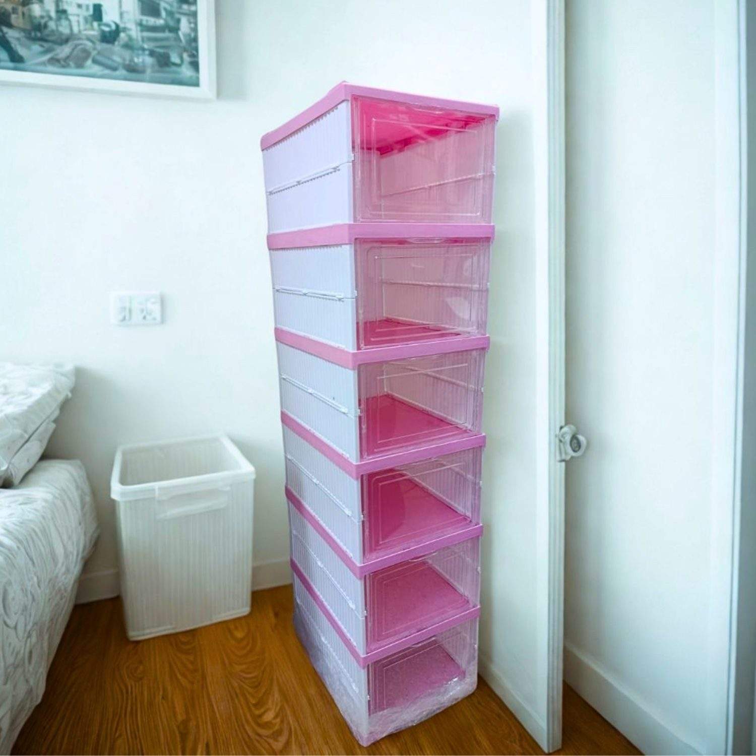 ZAPATERA PLEGABLE ACRÍLICA DE 6 NIVELES ROSA